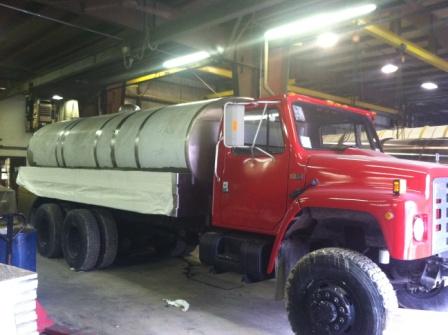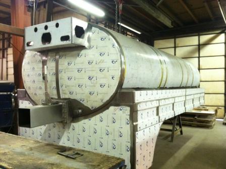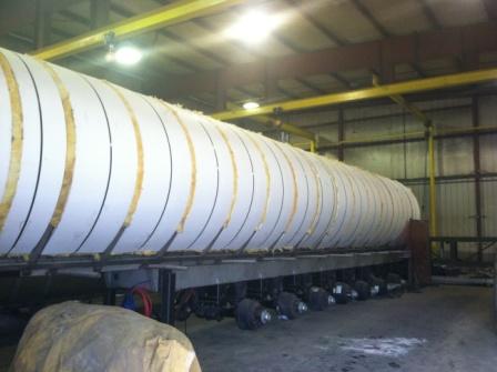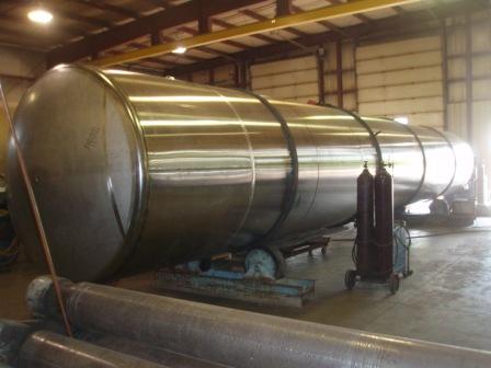 This frac tank was designed with a sloped floor for draining heavy products saturated with sand.